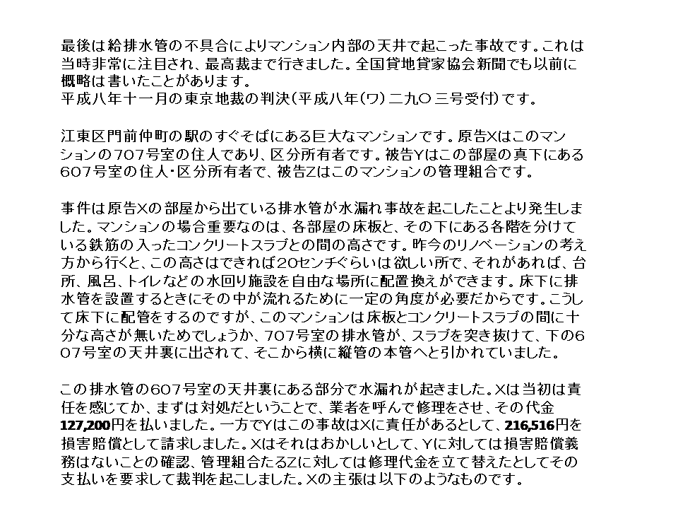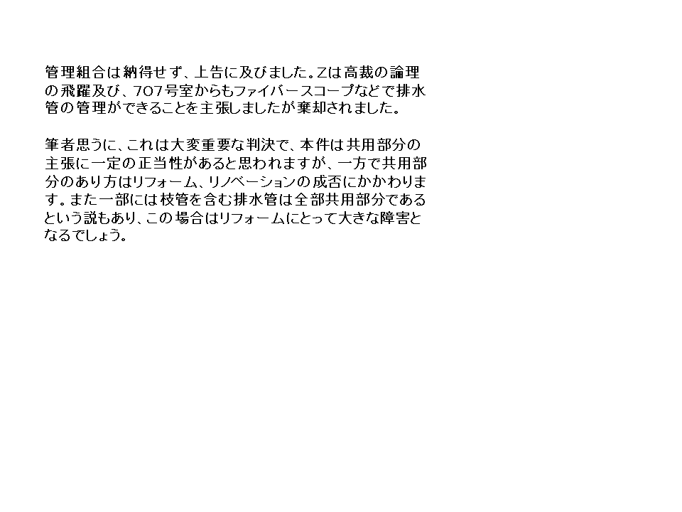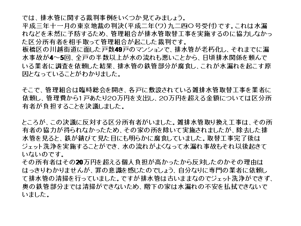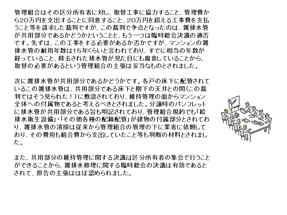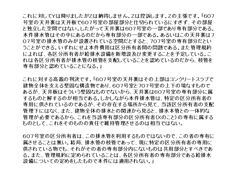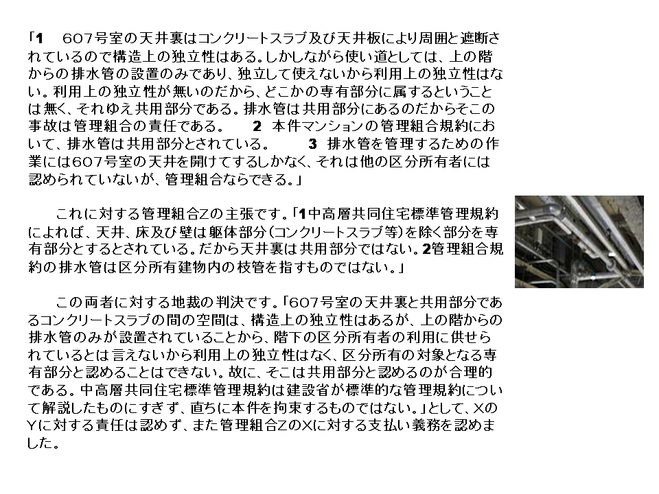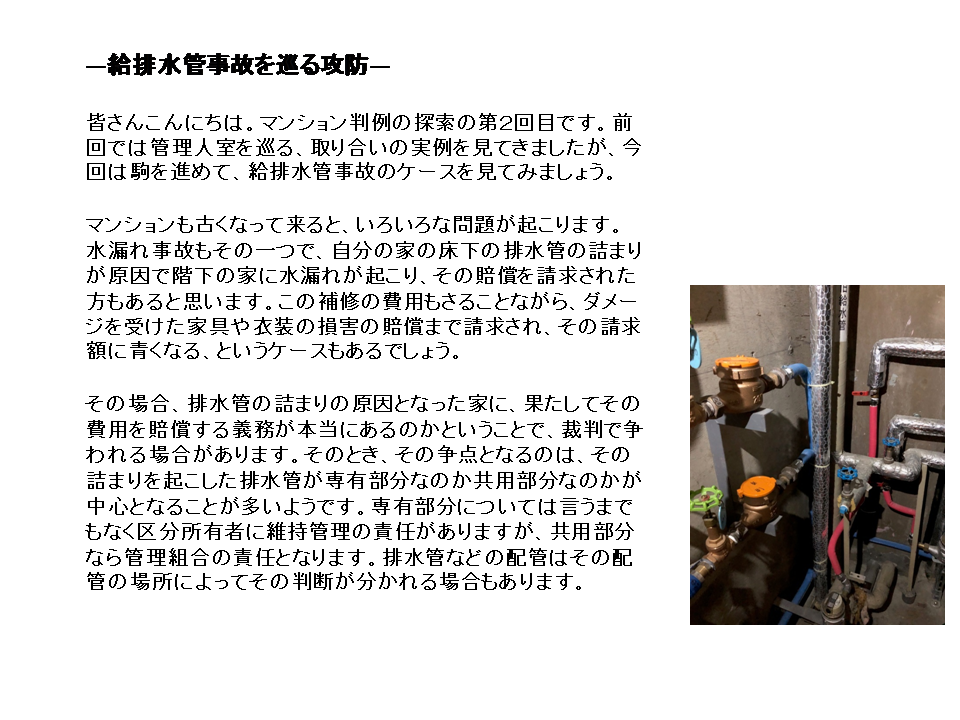 専有部分下の給排水管の責任は誰か。給排水管の管理責任は誰か